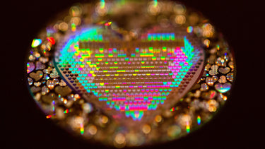 This piece features a large heart in the center, with the words, "Two Hearts, One Beat" on it. It is surrounded by many more hearts, all sparkling due to the diffractive element present in all of them. It is framed in a beautiful sterling silver pendant that complements the medallion perfectly. Using the latest nanotechnology, this medallion can withstand extreme temperatures and the test of time.