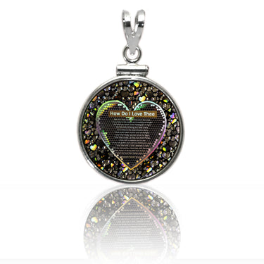'How Do I Love Thee?' is a poem by Elizabeth Barrett Browning counting all the ways she loves her significant other. With this piece, you can keep such tender words close to your heart, or gift your special someone with a reminder of how special they are to you. The medallion features a large heart with the poem in the center, surrounded by glittering hearts. It comes in a beautiful high-quality sterling silver pendant, which enhances the lovely look. The medallion can withstand scorching and frigid temperatures, and even the sands of time, just going to show how love can last for centuries. The sparkle and glow of the piece is due to the diffractive elements on it, a result of the latest nanotechnology.
